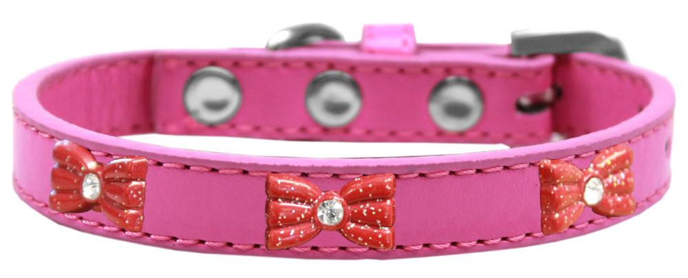 Red Glitter Bow Widget Dog Collar Bright Pink Size 20