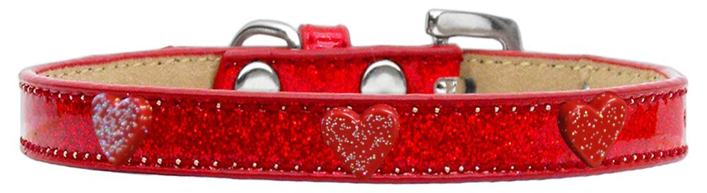 Red Glitter Heart Widget Dog Collar Red Ice Cream Size 18