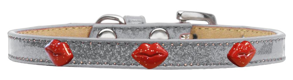 Red Glitter Lips Widget Dog Collar Silver Ice Cream Size 20