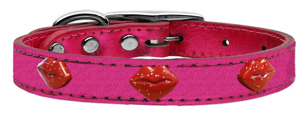 Red Glitter Lips Widget Genuine Metallic Leather Dog Collar Pink 12