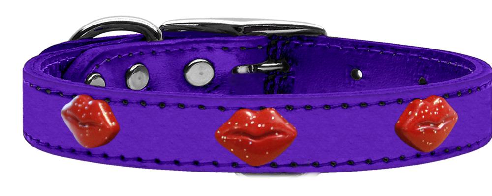 Red Glitter Lips Widget Genuine Metallic Leather Dog Collar Purple 12