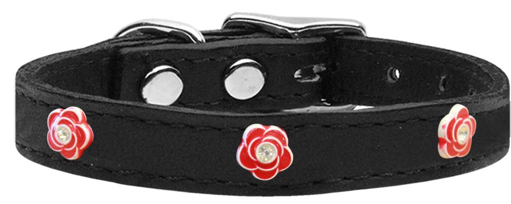 Red Rose Widget Genuine Leather Dog Collar Black 16