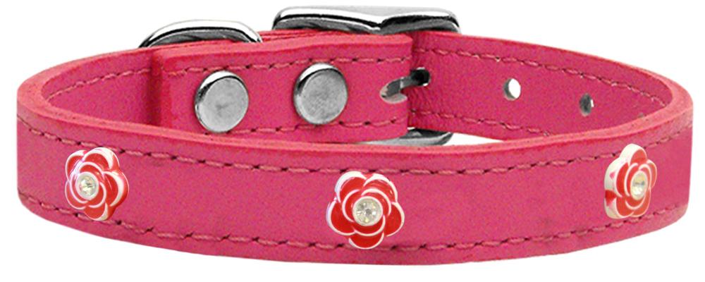 Red Rose Widget Genuine Leather Dog Collar Pink 16