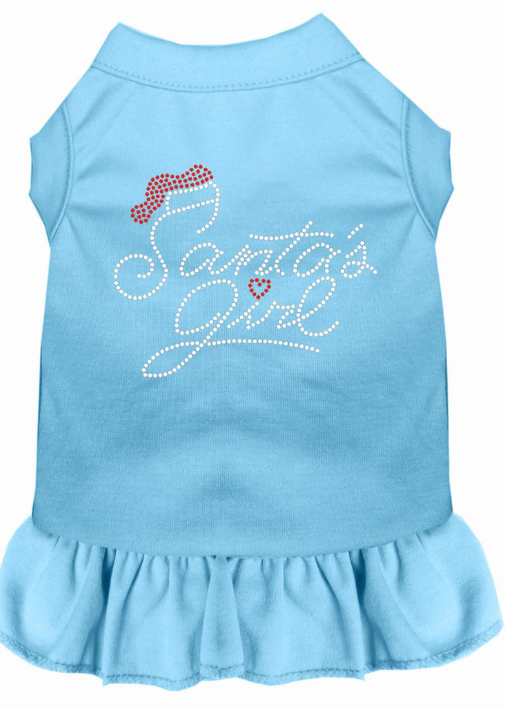 Santa's Girl Rhinestone Dog Dress Baby Blue Sm (10)