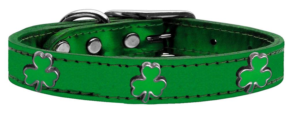 Shamrock Widget Genuine Metallic Leather Dog Collar Emerald Green 22