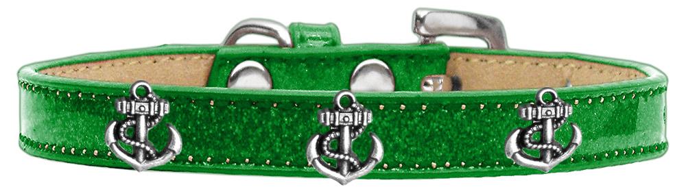 Silver Anchor Widget Dog Collar Emerald Green Ice Cream Size 12