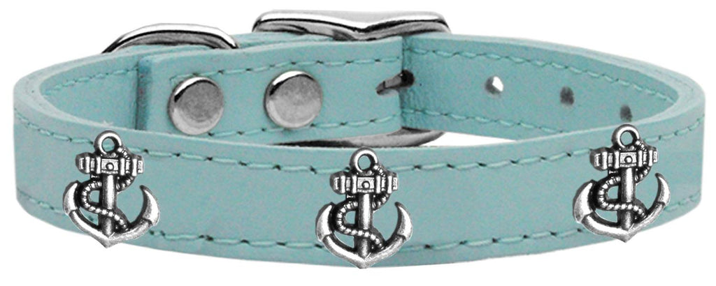 Silver Anchor Widget Genuine Leather Dog Collar Baby Blue 24
