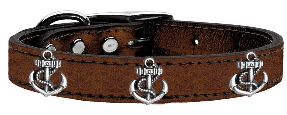 Silver Anchor Widget Genuine Metallic Leather Dog Collar Bronze 18