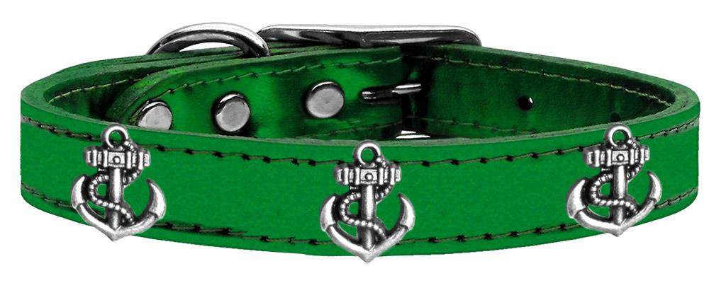 Silver Anchor Widget Genuine Metallic Leather Dog Collar Emerald Green 12