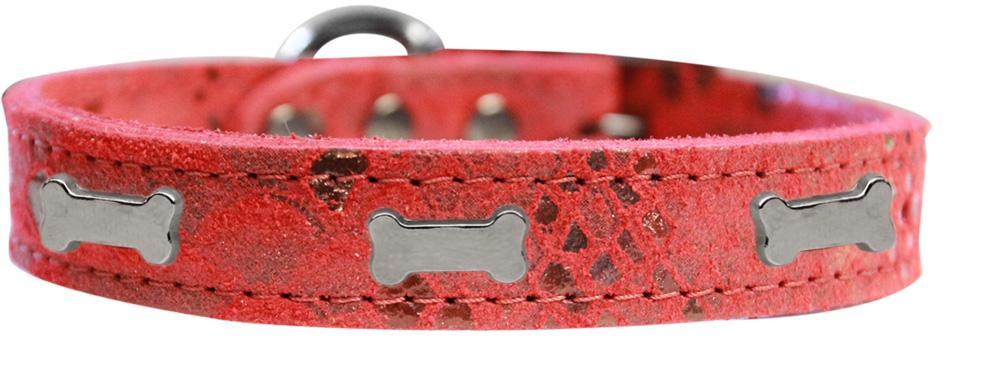 Silver Bone Widget Dragon Skin Genuine Leather Dog Collar Red Size 24