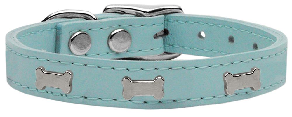 Silver Bone Widget Genuine Leather Dog Collar Baby Blue 22