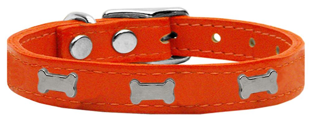 Silver Bone Widget Genuine Leather Dog Collar Orange 20