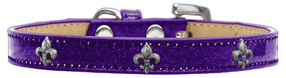 Silver Fleur De Lis Widget Dog Collar Purple Ice Cream Size 20