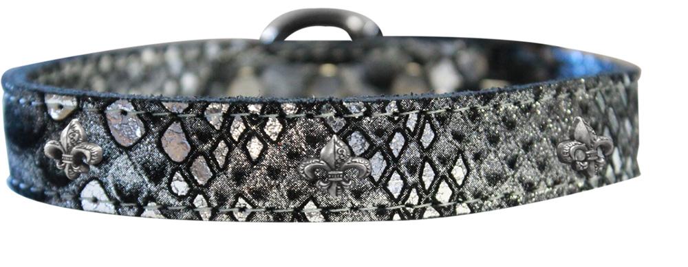 Silver Fleur De Lis Widget Dragon Skin Genuine Leather Dog Collar Silver Size 18