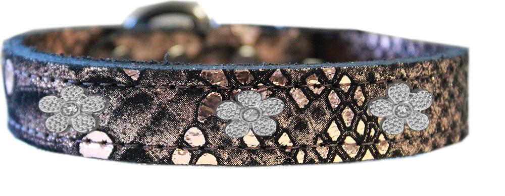 Silver Flower Widget Dragon Skin Genuine Leather Dog Collar Copper Size 24
