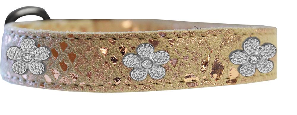 Silver Flower Widget Dragon Skin Genuine Leather Dog Collar Golden Size 10