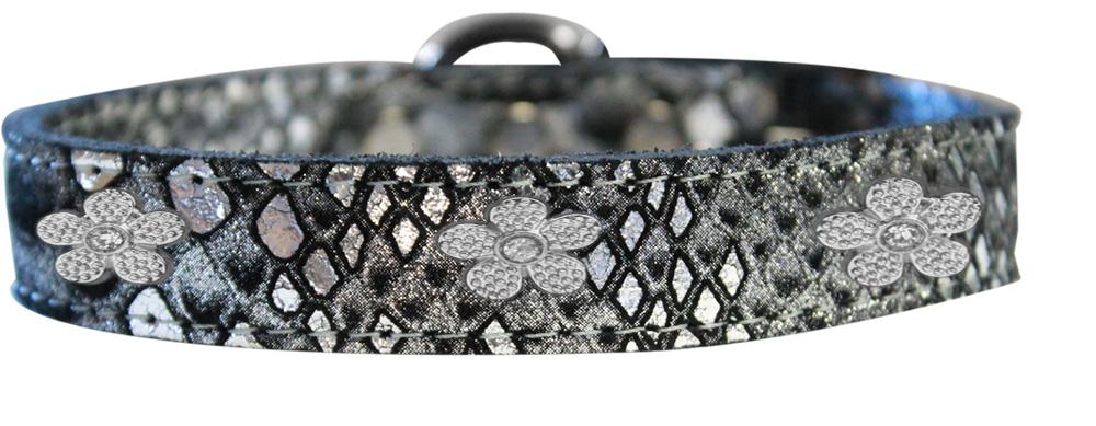 Silver Flower Widget Dragon Skin Genuine Leather Dog Collar Silver Size 24