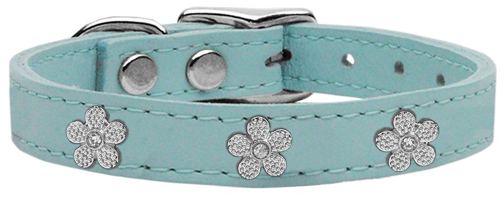 Silver Flower Widget Genuine Leather Dog Collar Baby Blue 10
