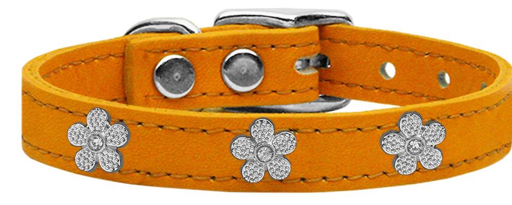 Silver Flower Widget Genuine Leather Dog Collar Mandarin 14