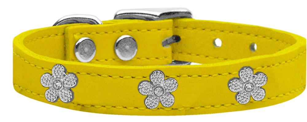 Silver Flower Widget Genuine Leather Dog Collar Yellow 10