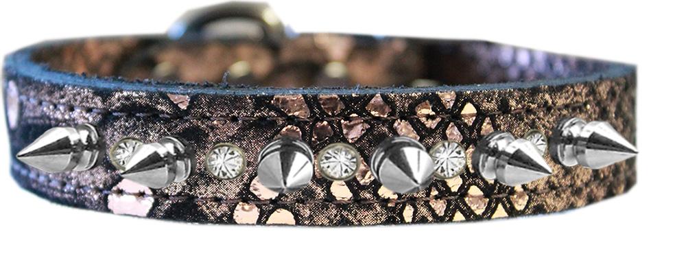 Silver Spike And Clear Crystal Dragon Skin Genuine Leather Dog Collar Copper Size 10
