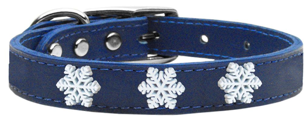 Snowflake Widget Genuine Leather Dog Collar Blue 20