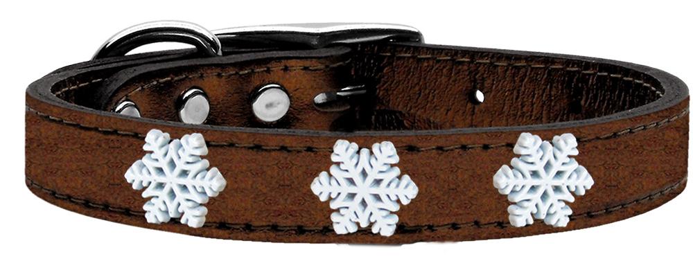 Snowflake Widget Genuine Metallic Leather Dog Collar Bronze 12