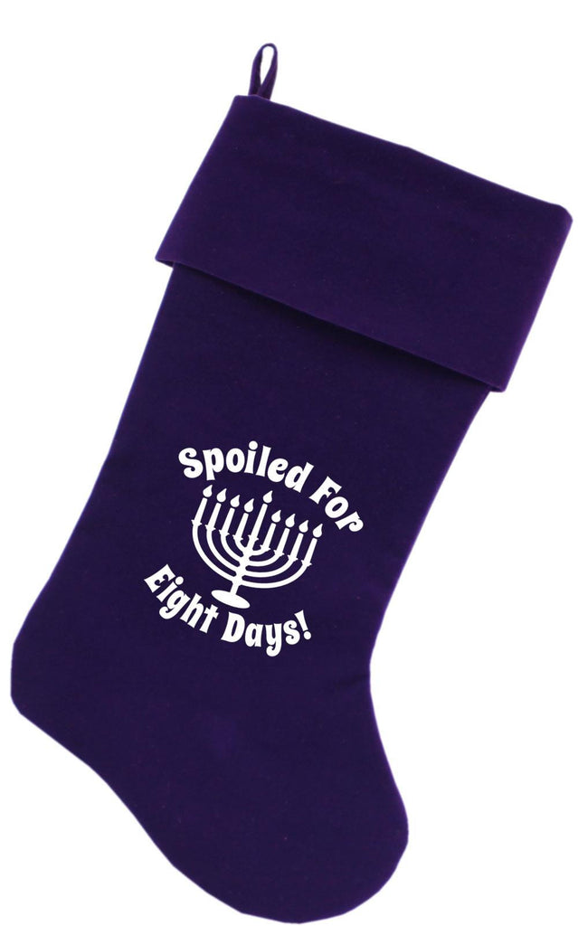 Spoiled for 8 Days Screen Print 18 inch Velvet Christmas Stocking Purple