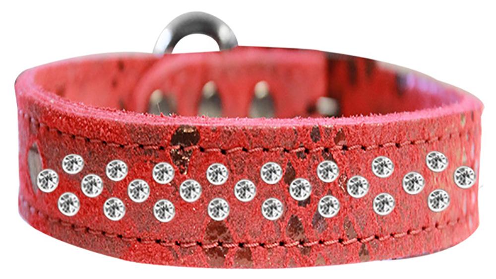 Sprinkle Clear Crystal Jeweled Dragon Skin Genuine Leather Dog Collar Red Size 20