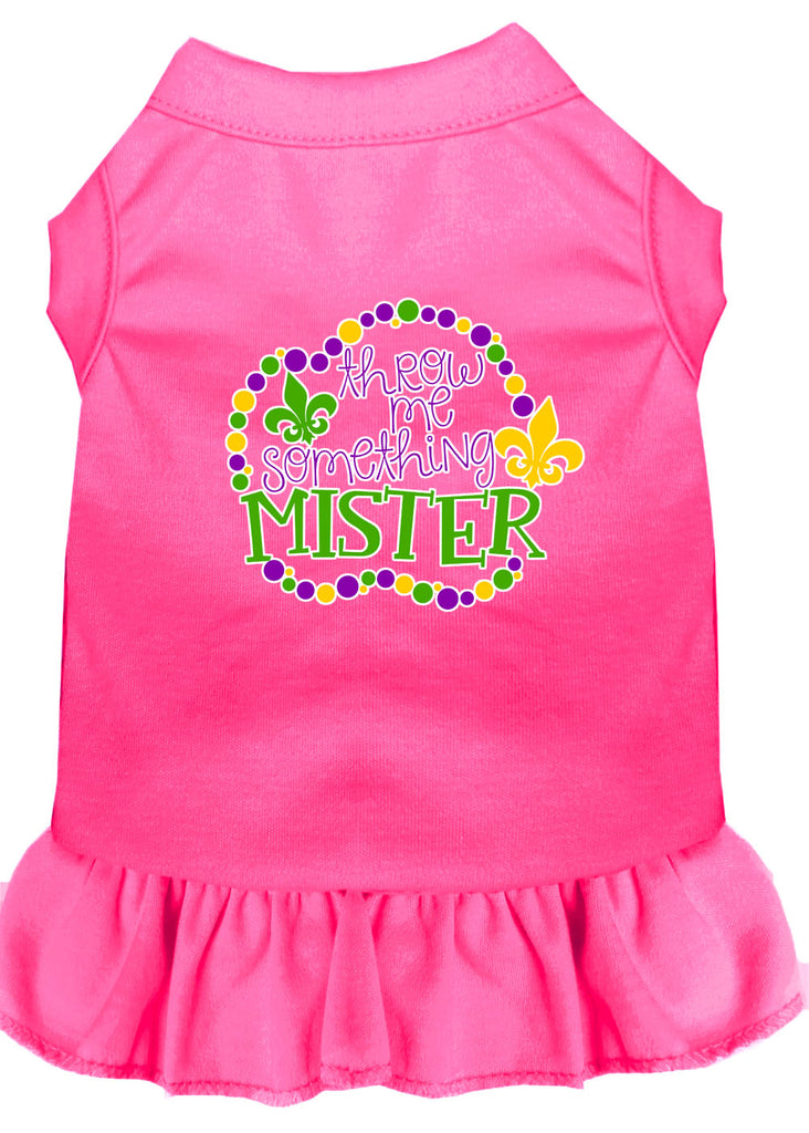 Throw Me Something Screen Print Mardi Gras Dog Dress Bright Pink Xxxl