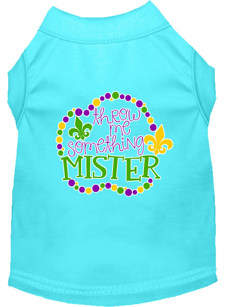 Throw Me Something Screen Print Mardi Gras Dog Shirt Aqua Xl