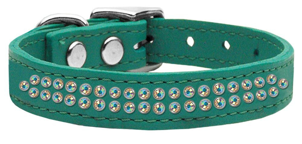 3/4" wide genuine leather adorned with 2 rows of premium rim set Aurora Borealis crystals.
