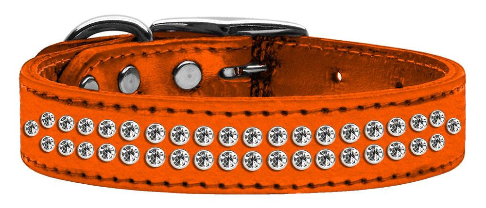 Two Row Clear Crystal Metallic Leather Orange 18