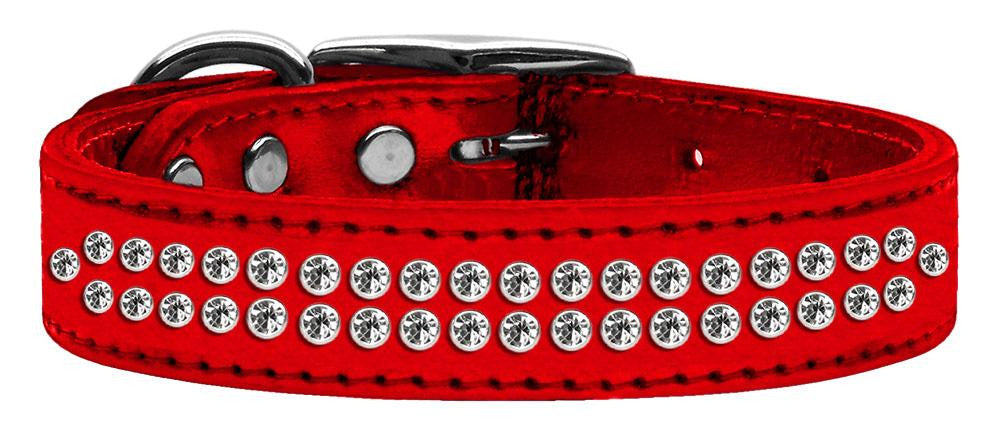 Two Row Clear Crystal Metallic Leather Red 20
