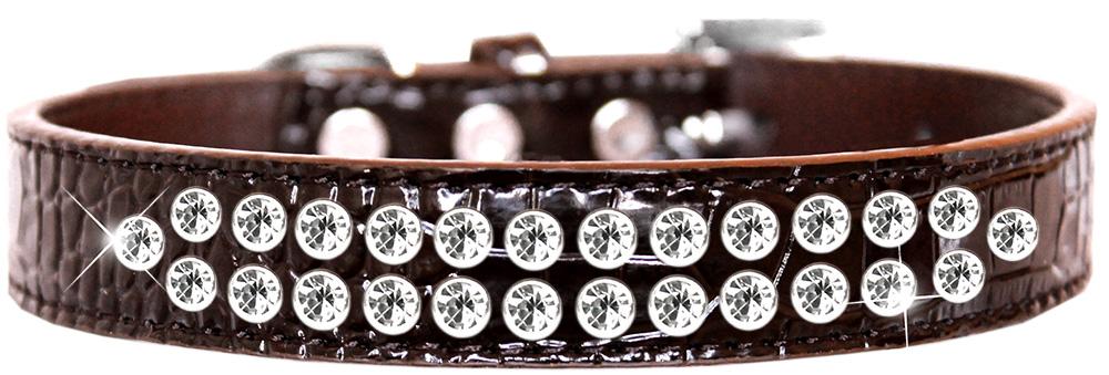 Two Row Clear Jewel Croc Dog Collar Chocolate Size 20