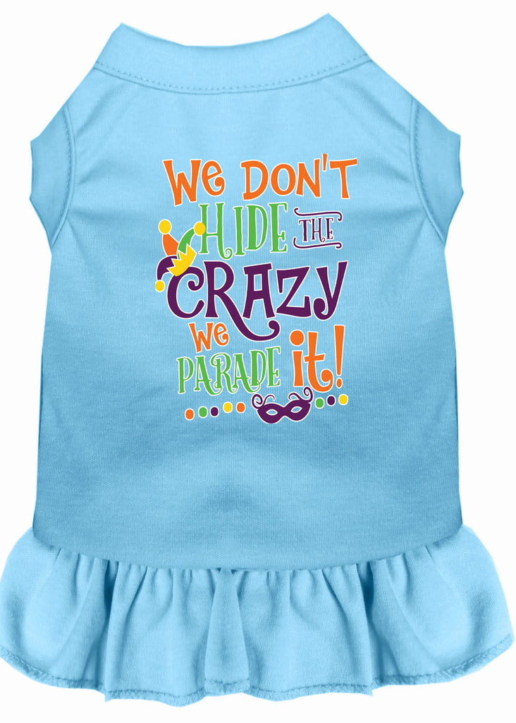 We Don't Hide The Crazy Screen Print Mardi Gras Dog Dress Baby Blue Med