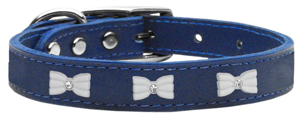 White Bow Widget Genuine Leather Dog Collar Blue 12