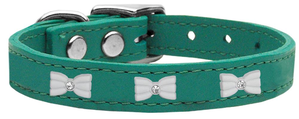 White Bow Widget Genuine Leather Dog Collar Jade 24