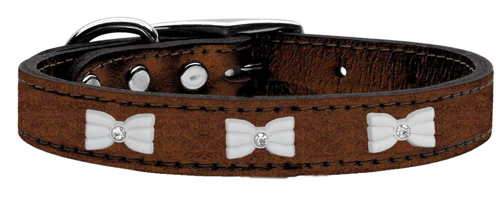 White Bow Widget Genuine Metallic Leather Dog Collar Bronze 22