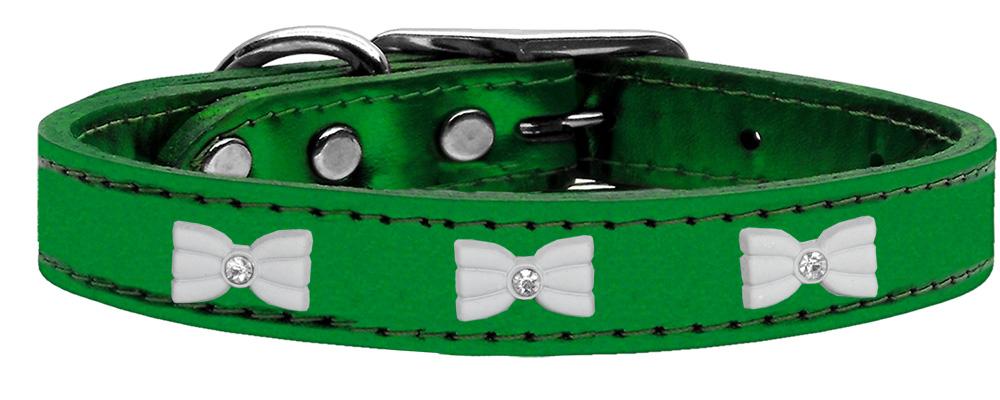 White Bow Widget Genuine Metallic Leather Dog Collar Emerald Green 16