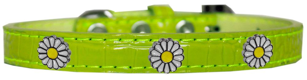 White Daisy Widget Croc Dog Collar Lime Green Size 16
