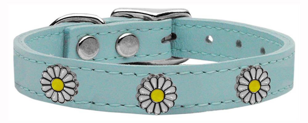 White Daisy Widget Genuine Leather Dog Collar Baby Blue 26