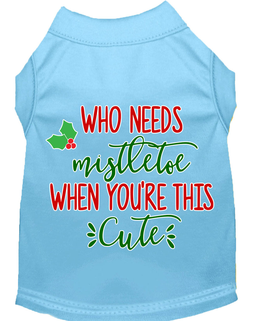 Who Needs Mistletoe Screen Print Dog Shirt Baby Blue Xl