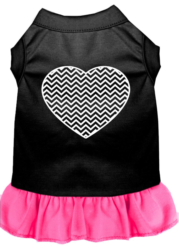 Chevron Heart Screen Print Dress Black With Bright Pink Sm (10)
