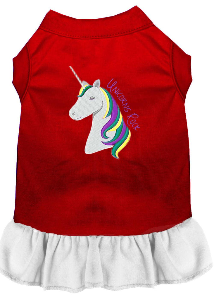 Unicorns Rock Embroidered Dog Dress Red With White Xxl (18)