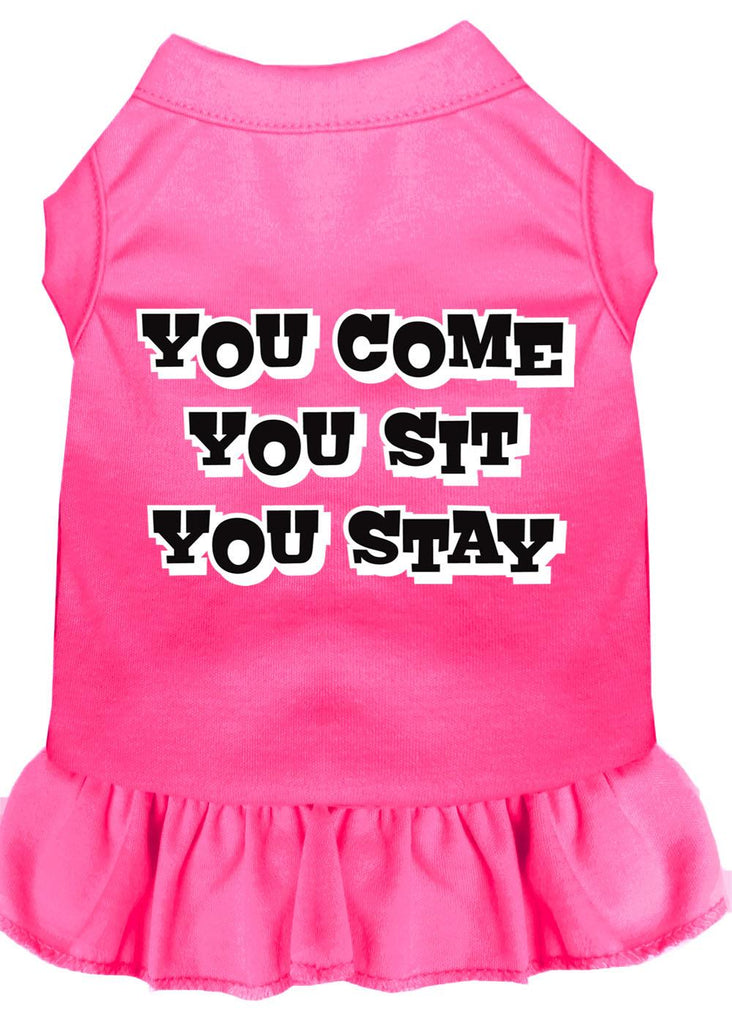 Product Summary : Apparel/Dog Dresses/Screen Print Dresses/You Come Sit Stay Screen Print Pet Dress@New!/Screen Print Dresses/You Come Sit Stay Screen Print Pet Dress
