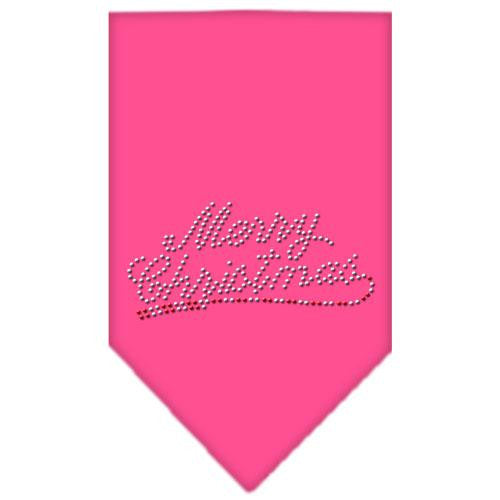 Merry Christmas Rhinestone Bandana Bright Pink Small