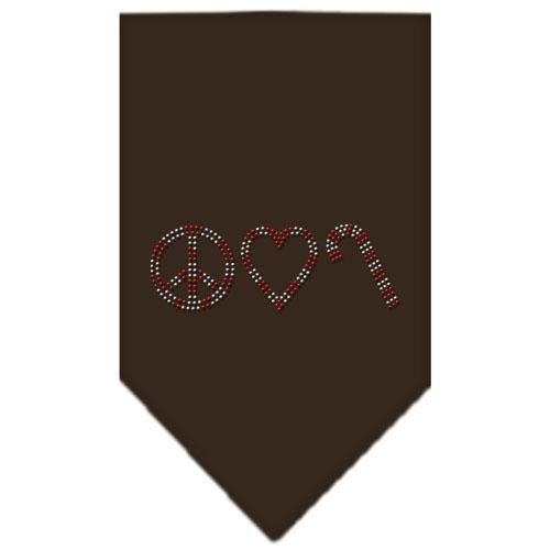 Peace Love Candy Cane Rhinestone Bandana Cocoa Large