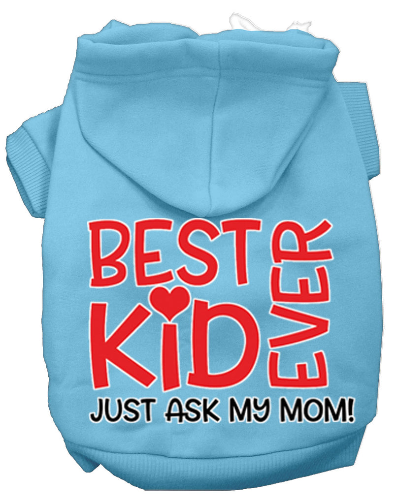 Ask My Mom Screen Print Dog Hoodie Baby Blue Xs
