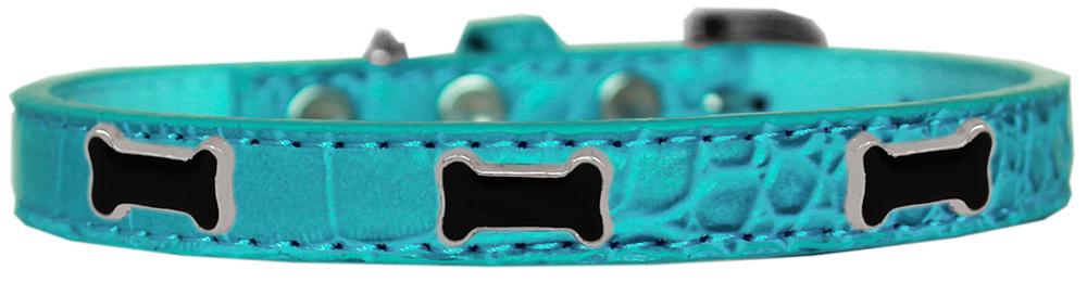 Black Bone Widget Croc Dog Collar Turquoise Size 20